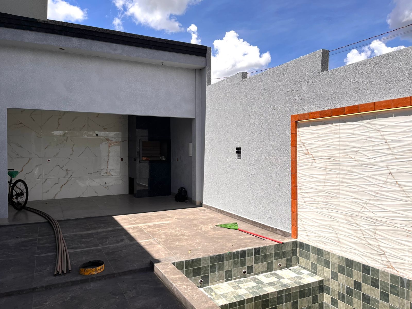 Linda casa de esquina, com 2 suítes + 1 quarto, 3 banheiros, sala e cozinha integradas, área de festa com churrasqueira, piscina, jardim e garagem para 2 carros laterais.